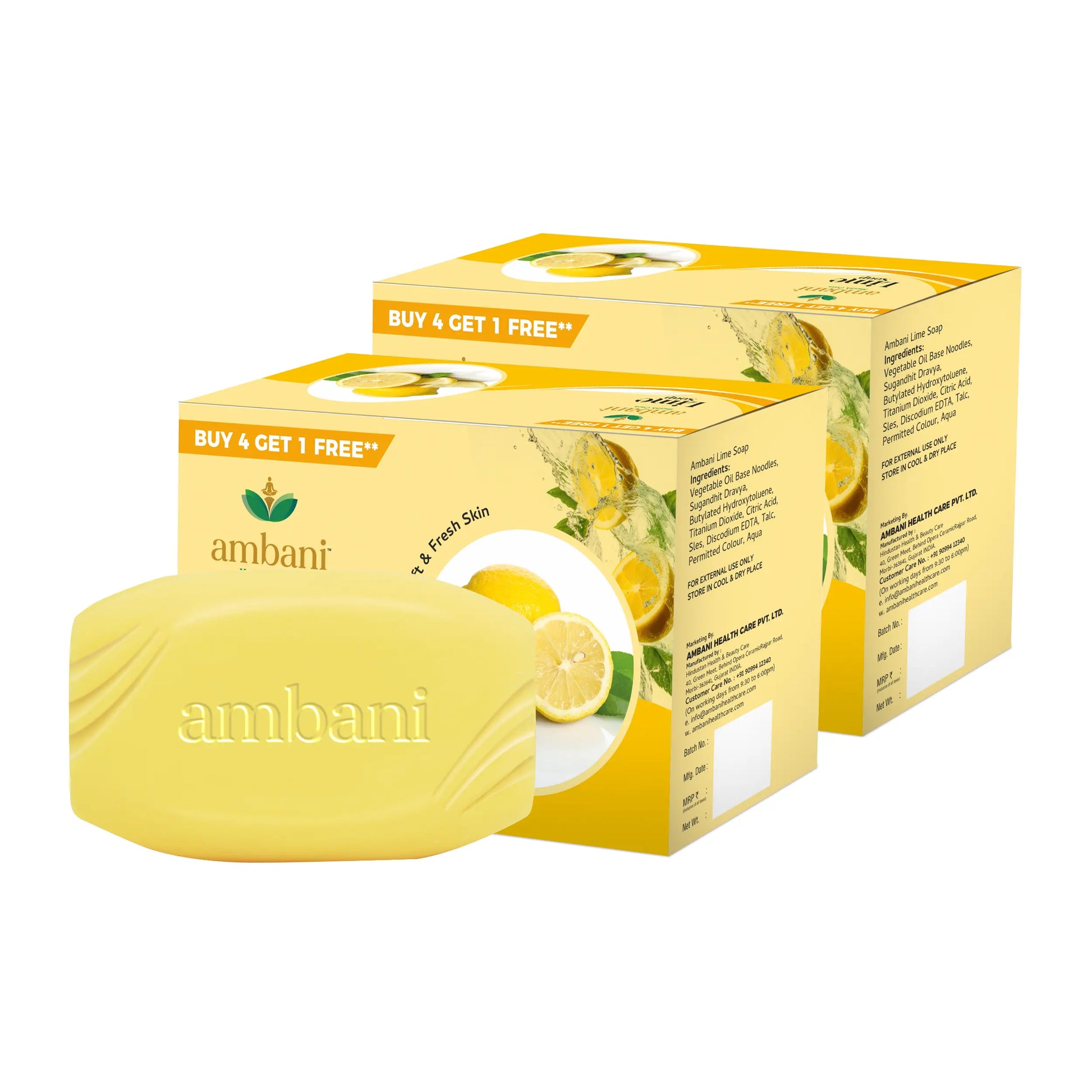 AMBANI HEALTH CARE Lime Soap I Refreshing Bathing Bar I Freshness of Lemon I Healthy Skin I Paraben Free I Handmade Natural with Essential Oils I Reducing Tanning I for All Skin Types (Set of 10)