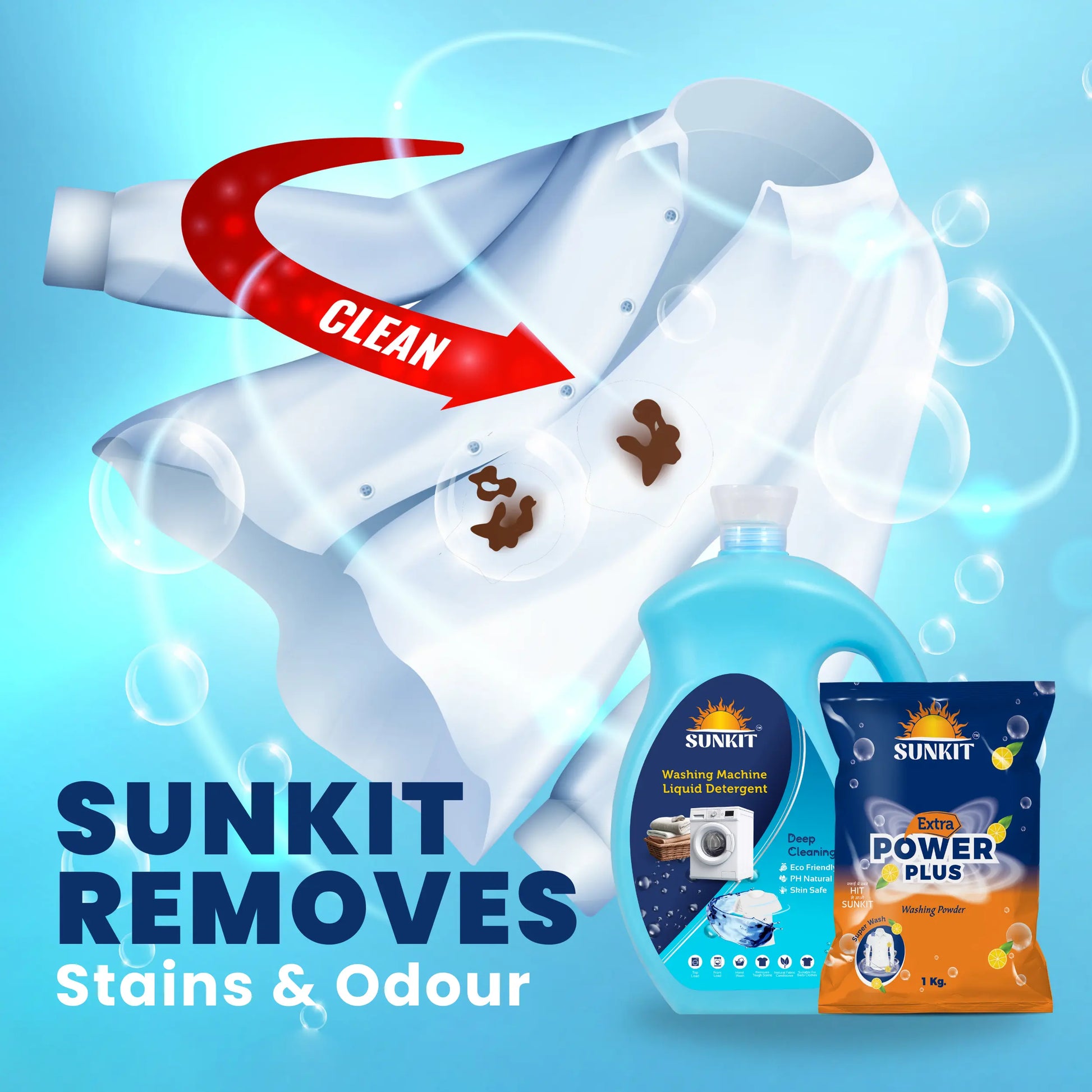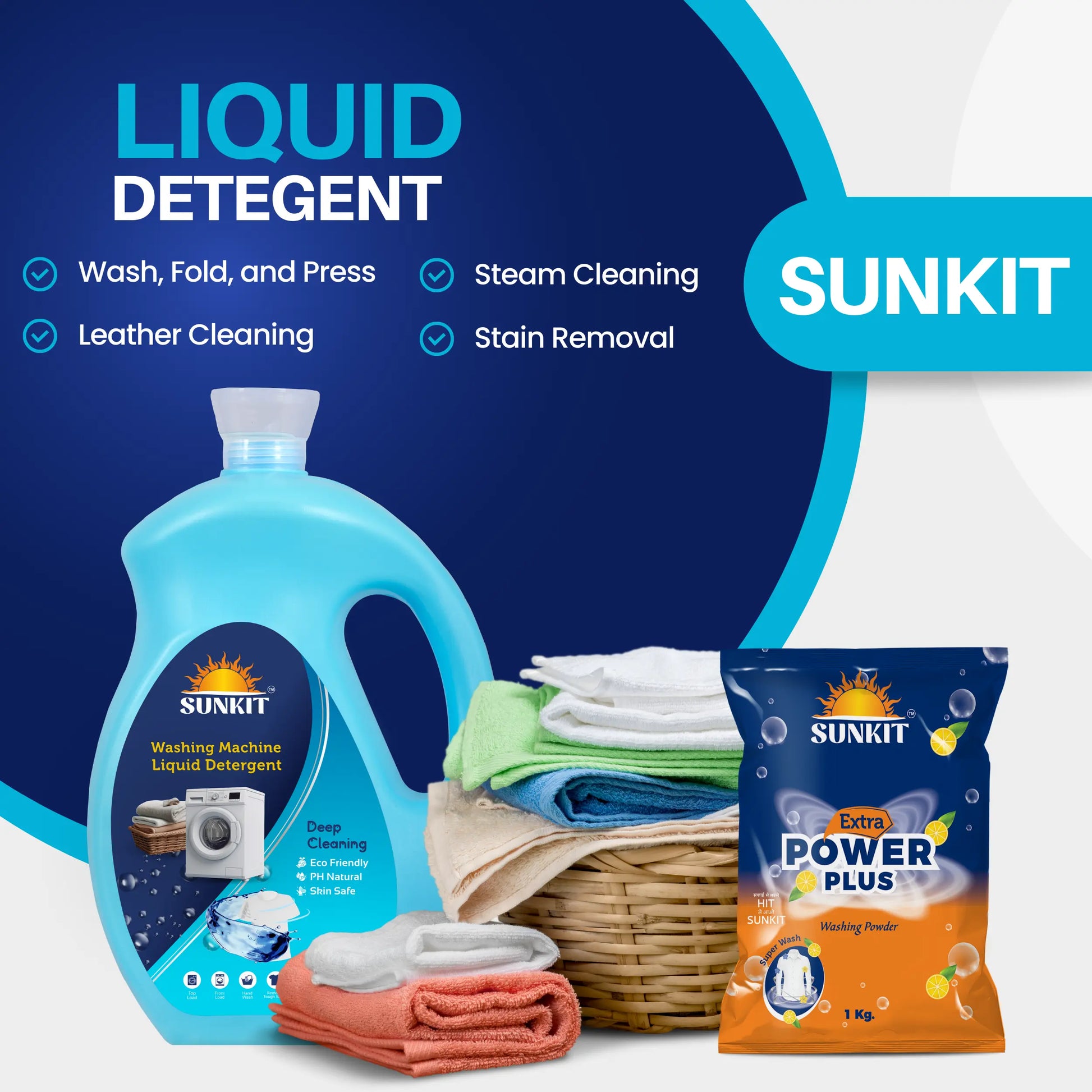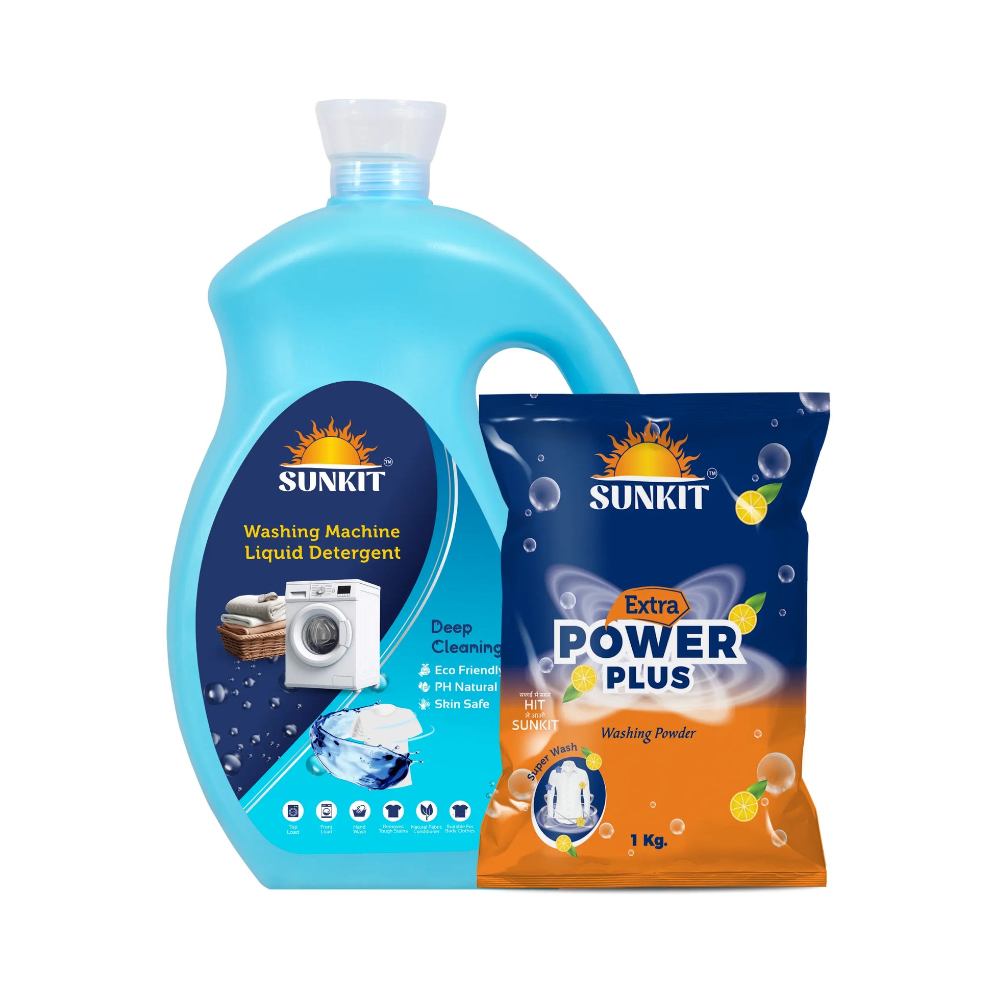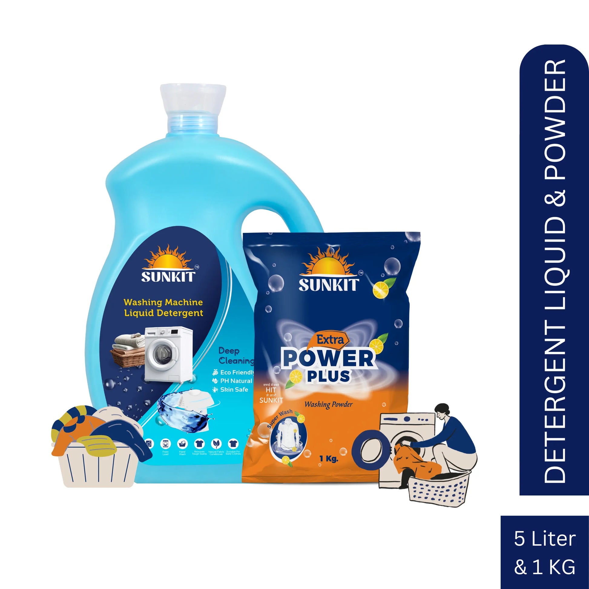 SUNKIT Detergent Powder and Liquid I Natural Ingredients Eco-friendly I Removes Stains & Odour I Long-Lasting Fresh Fragrance I for All Types of Fabrics, Washing Machine & Hand Wash (1KG + 5Liter)
