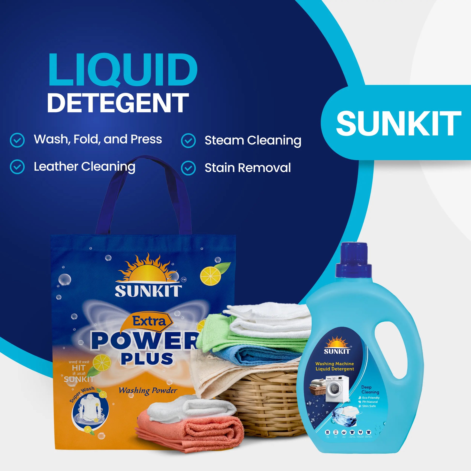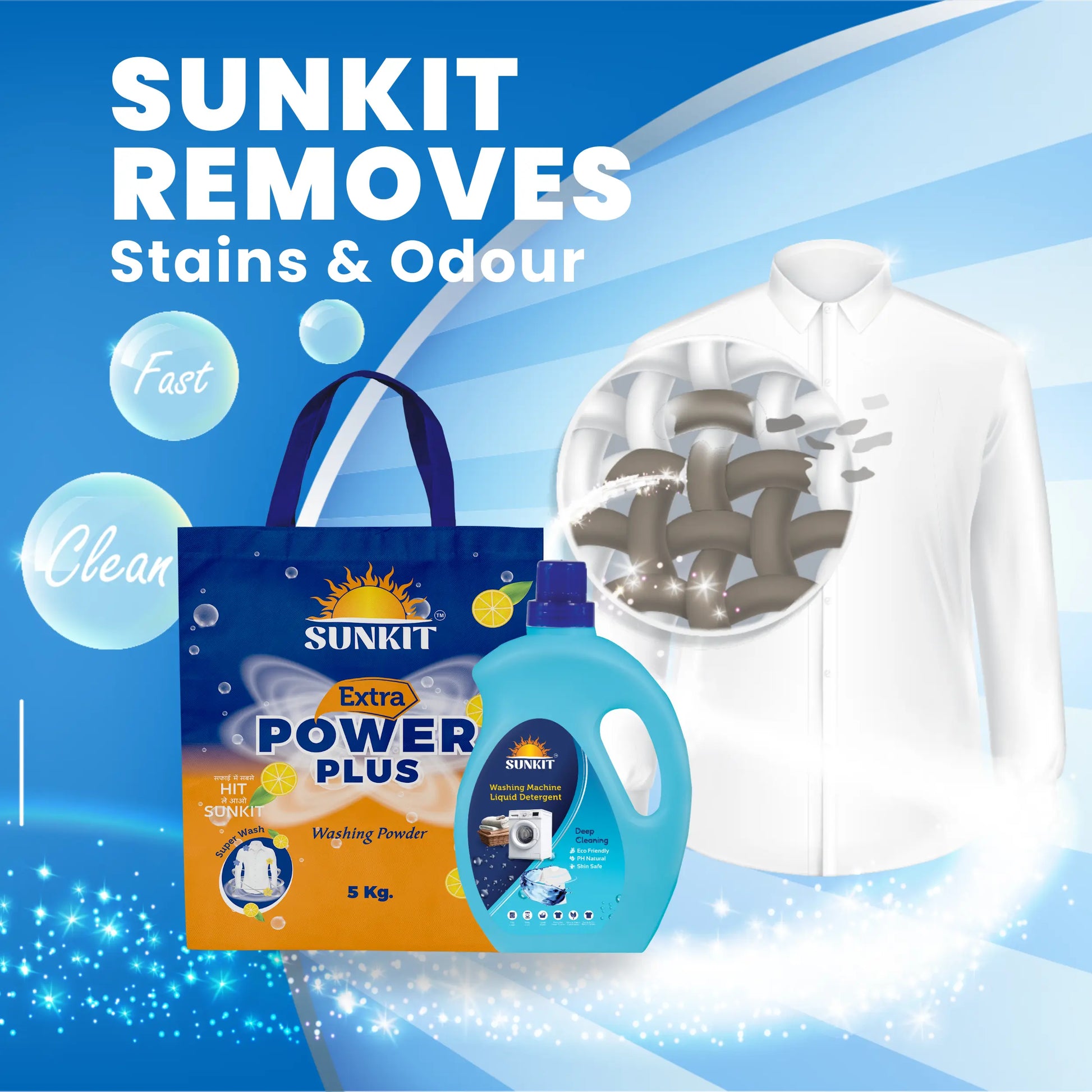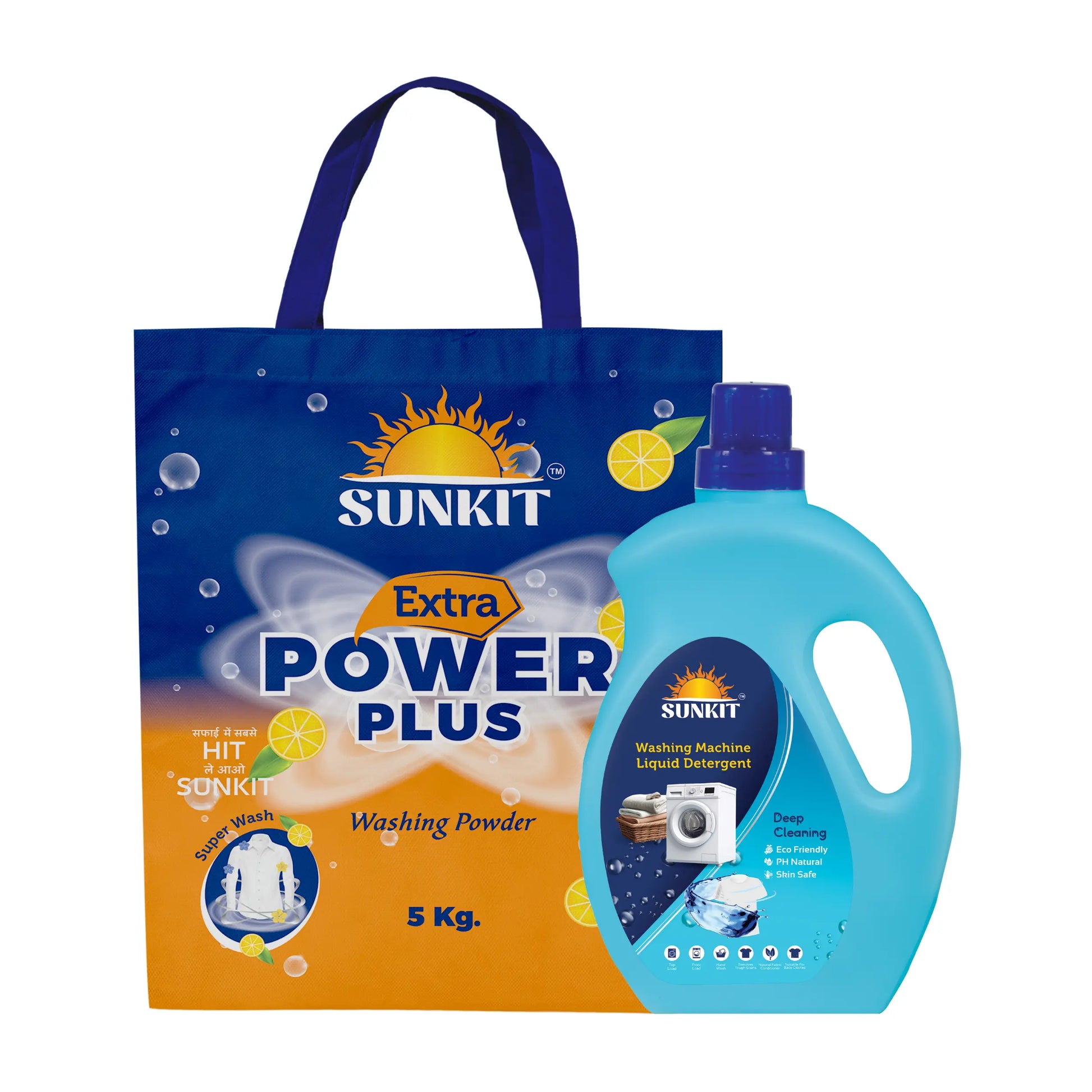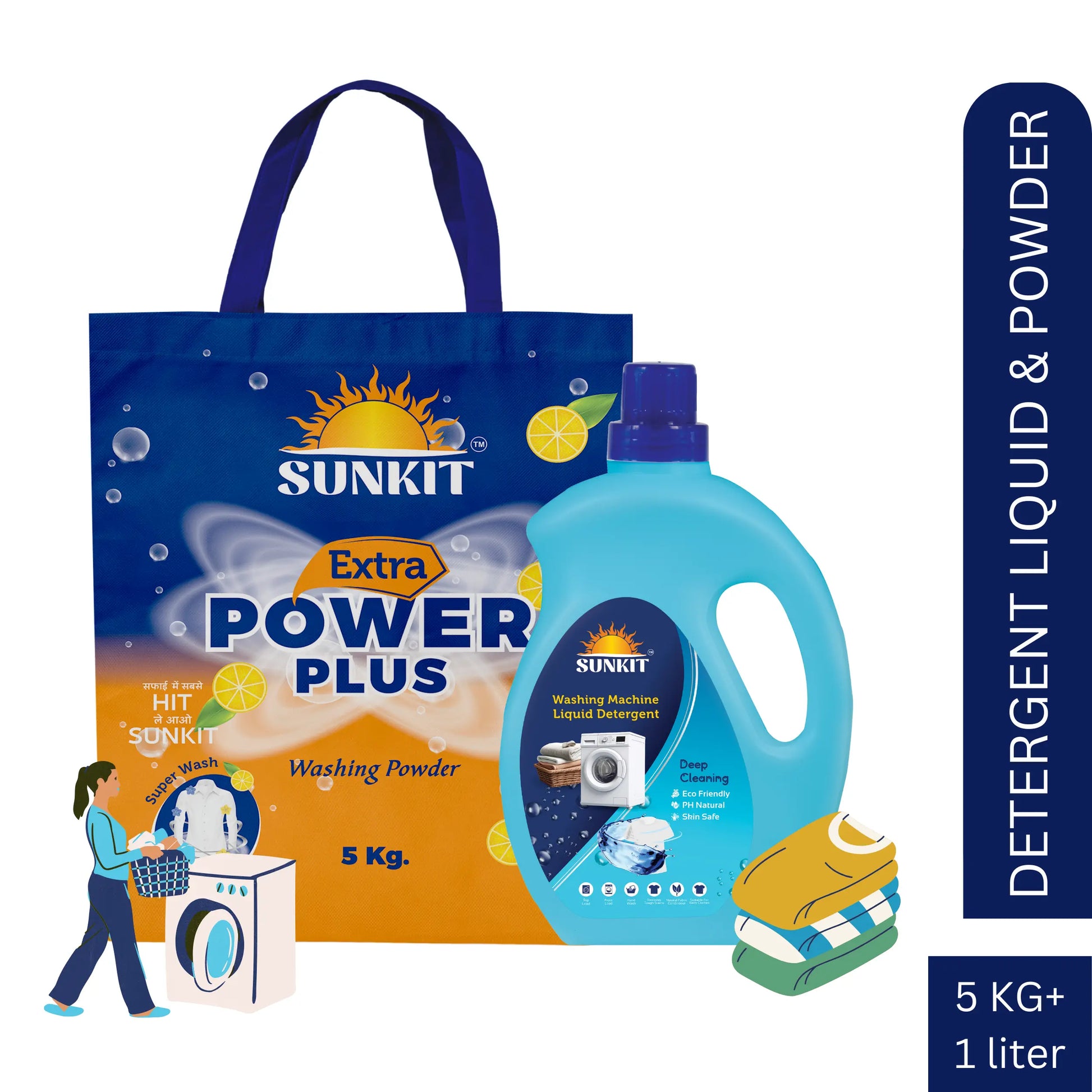 SUNKIT Detergent Powder and Liquid I Natural Ingredients Eco-friendly I Removes Stains & Odour I Long-Lasting Fresh Fragrance I for All Types of Fabrics, Washing Machine & Hand Wash (5KG + 1Liter)
