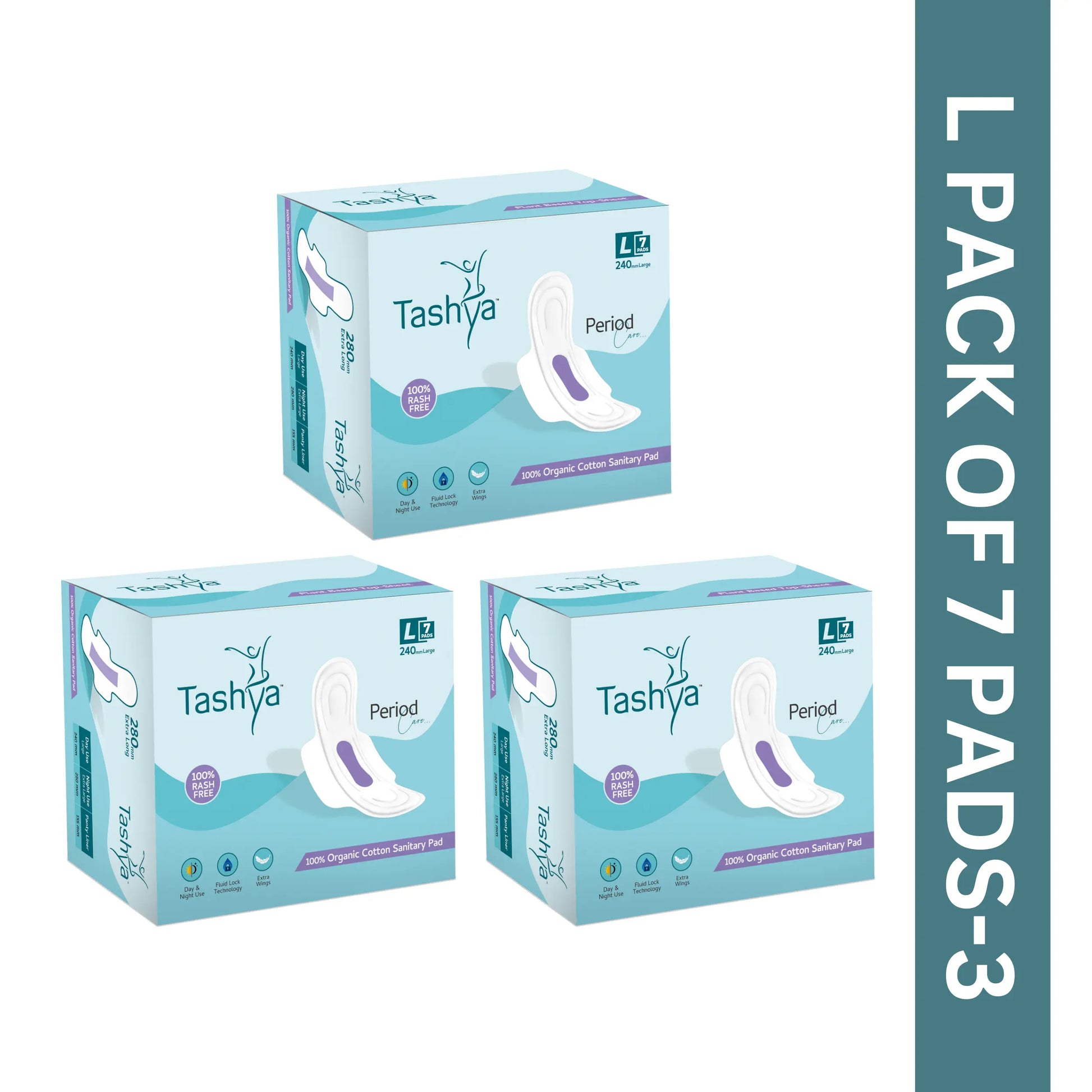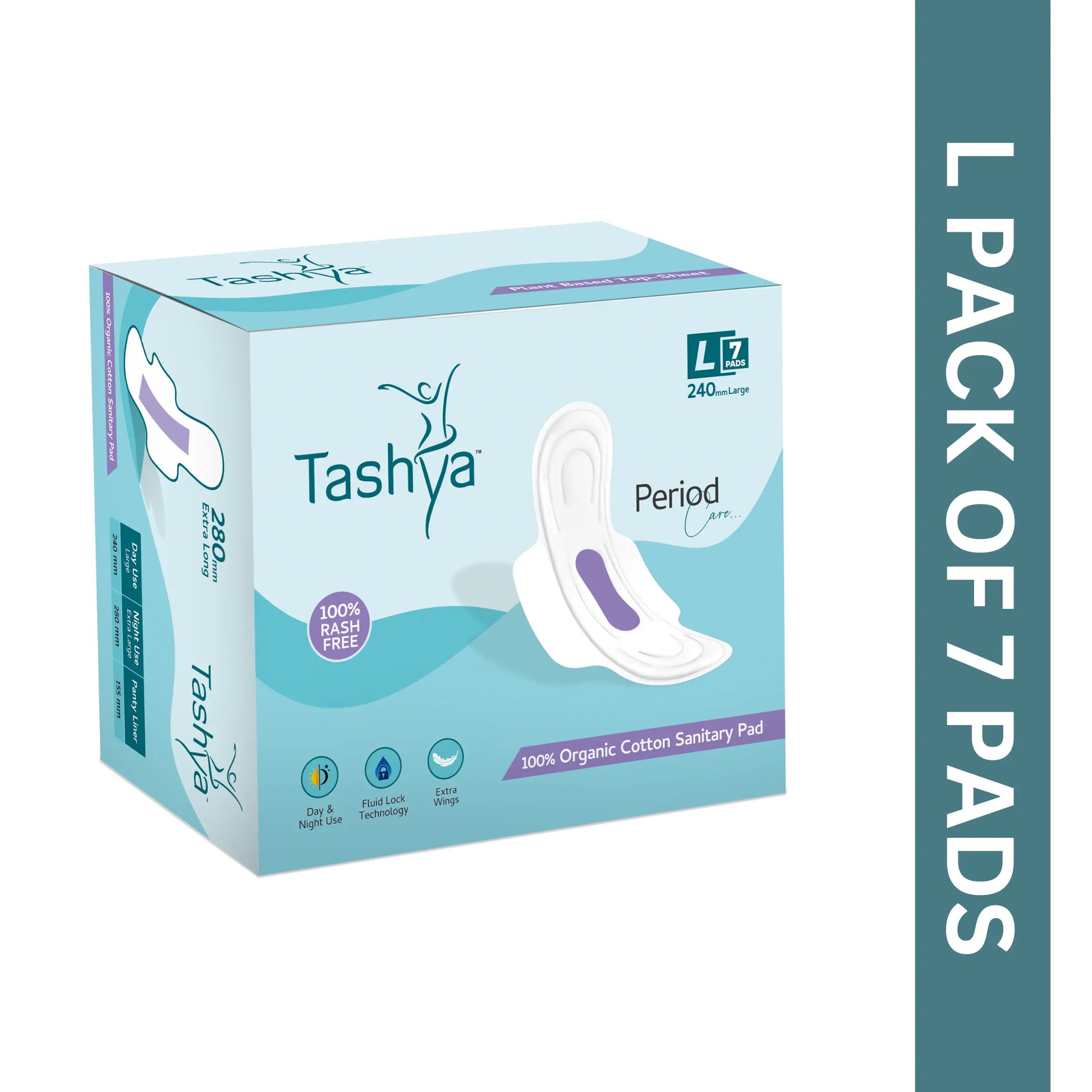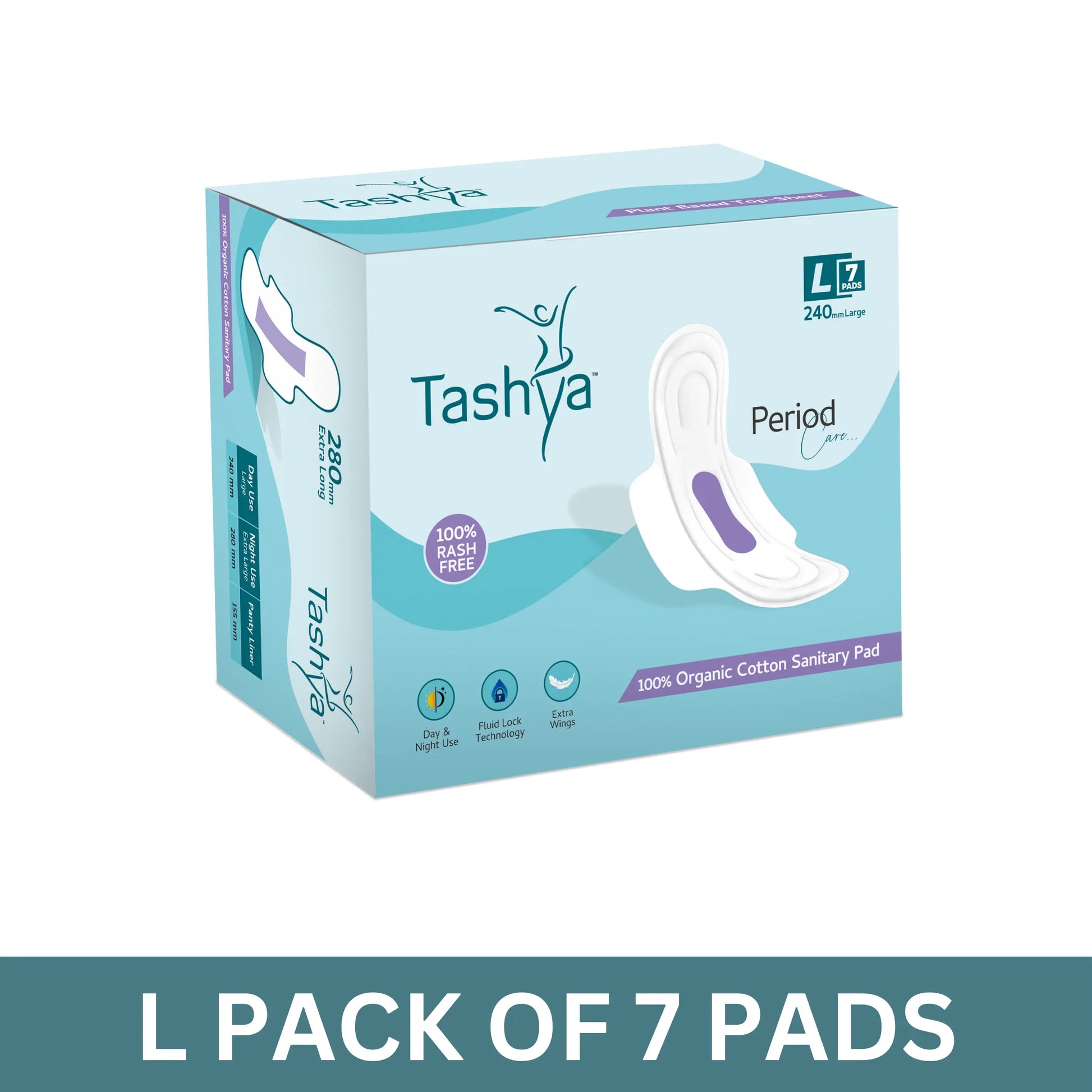 TASHYA 100% Pure Cotton Sanitary Pads I 8 Layer Sanitary Napkins I Fluid Lock Technology I Rash Free, Anti Tan, Skin Friendly I Hygiene & Comfort I Leak-proof I For All Skin Type I L - 240mm - 7 Pads