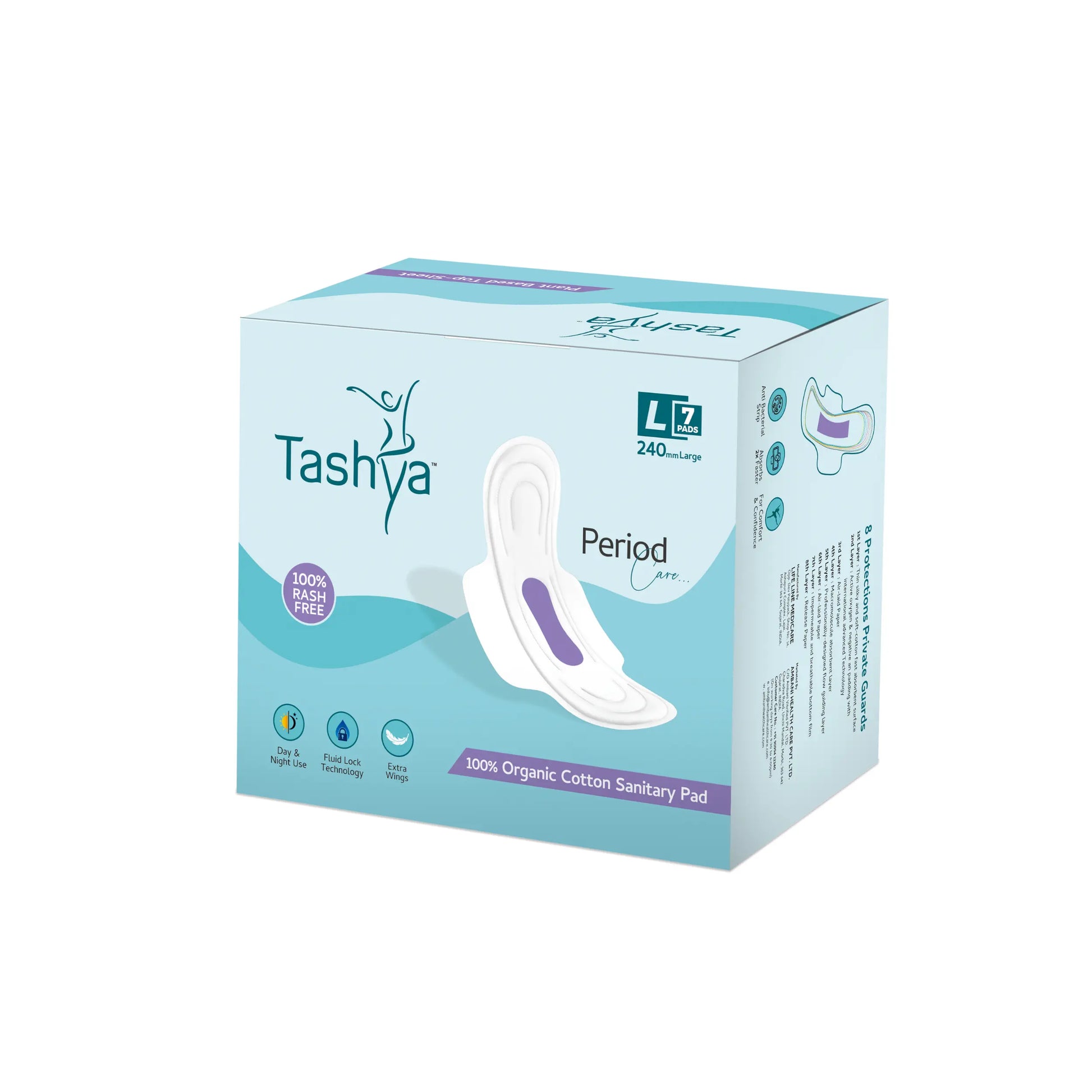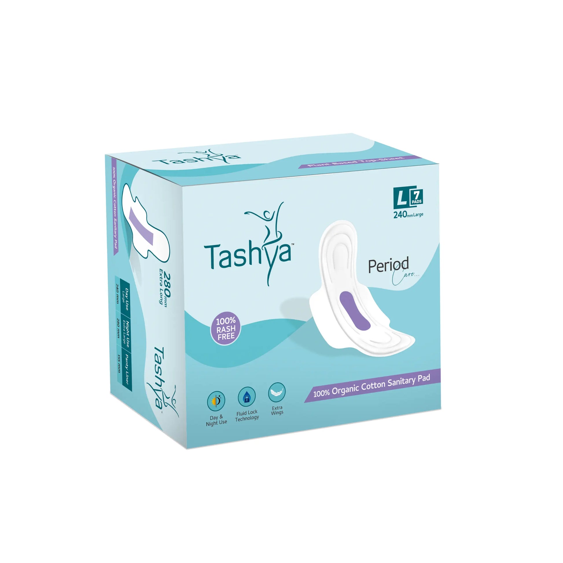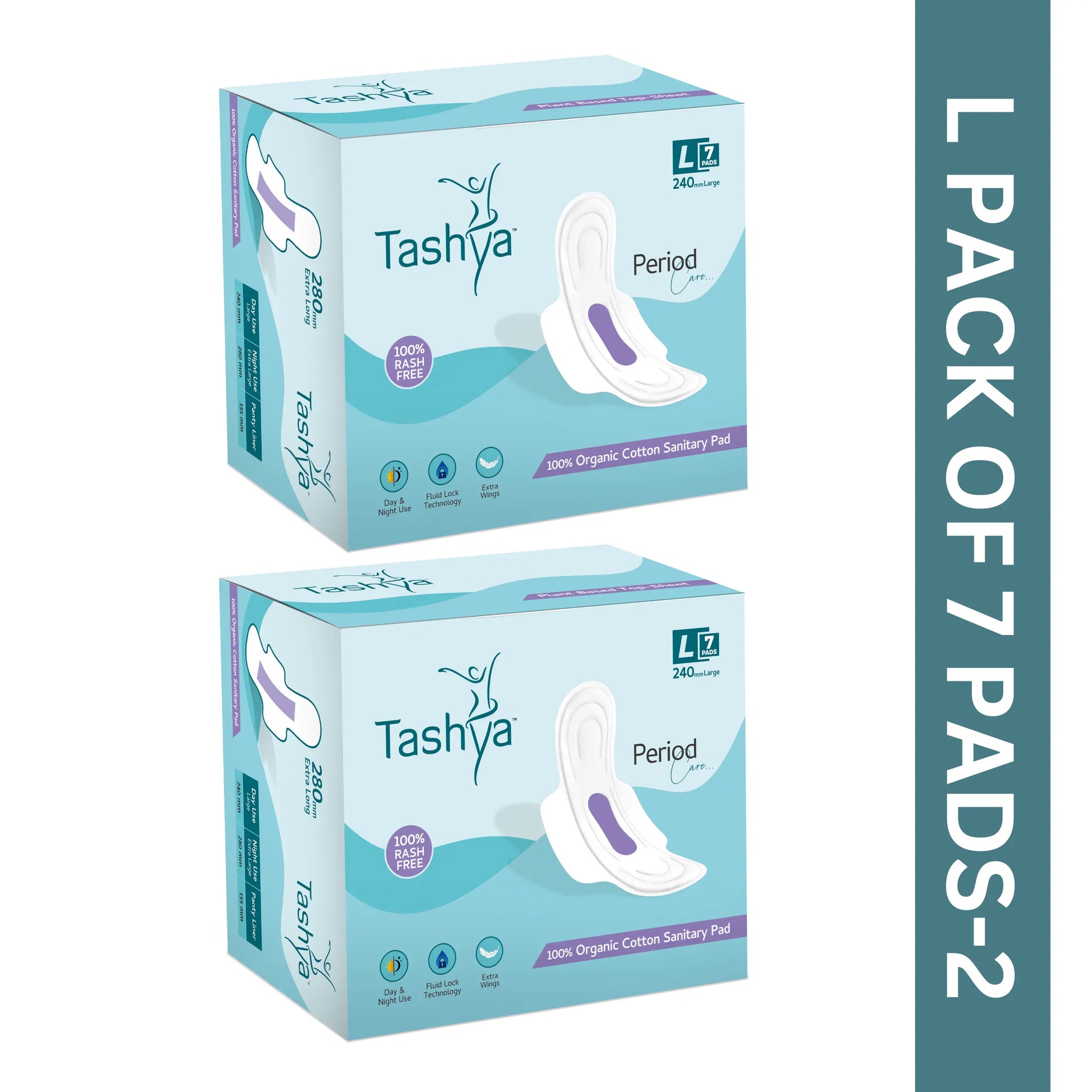 TASHYA 100% Pure Cotton Sanitary Pads I 8 Layer Sanitary Napkins I Fluid Lock Technology I Rash Free, Anti Tan, Skin Friendly I Hygiene & Comfort I Leak-proof I For All Skin Type I L - 240mm - 7 Pads